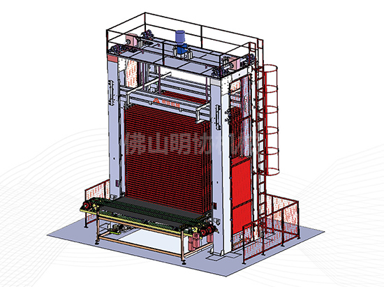 儲坯機是瓷磚自動化生產線中比較重要的一套輔助設備。因(yīn)為磚坯生產過程中,不可避(bì)免會有認為或者機(jī)械故障而造成(chéng)生產停頓或者空轉的現象,並使(shǐ)窯爐(lú)出現(xiàn)暫時空轉而導(dǎo)致熱能浪費以及後麵進窯的磚坯燒成出現大麵積的工藝缺陷(xiàn)。該設備功能是生產過程中,輸入窯爐進磚輥台的磚坯大於窯爐的產(chǎn)量時,多餘窯爐產量的磚坯會儲到儲坯機中(zhōng)。當輸送線上的磚坯進入窯爐進磚輥台時,儲坯機(jī)中的磚坯進(jìn)入窯爐進磚輥台進行補償。本設備可(kě)以根據客戶實際需求進行定(dìng)製、150m²-500m²。